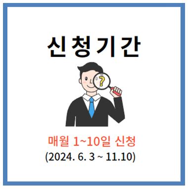 2024년 6월 3일 월요일 경기민원24에서 신청접수가 시작되는데요, 매월 1~10일 기간 동안만 신청가능하고 예산소진 시 종료될 수 있습니다.