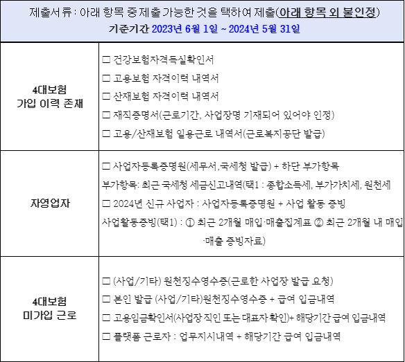 | 가족관계증명서 | 건강보험 자격득실 확인서 | 고용산재보험 자격이력 내역서 |