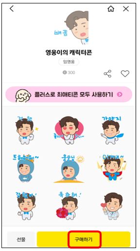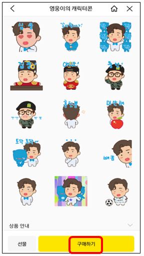 ② 카카오 이모티콘에 들어가셨으면 신규 '영웅이의 캐릭터콘' 들어갑니다.